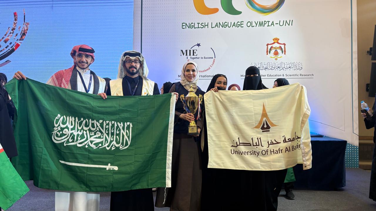 حقّقت جامعة حفر الباطن، ممثّلةً بـمركز اللغات والترجمة، إنجازًا نوعيًا يعكس تميّز طلابها، بحصولها على المركز الثالث من بين 58 فريقاً عالمياً في محور العمل الجماعي ضمن أولمبياد اللغة الإنجليزية العالمية للجامعات 2025، الذي أُقيم في المملكة الأردنية الهاشمية خلال الفترة من 18 إلى 20 ديسمبر 2025، تحت عنوان «الرياضة»، وذلك في إطار دعم الجامعة للتميّز الأكاديمي وتعزيز الحضور الدولي للجامعات السعودية.