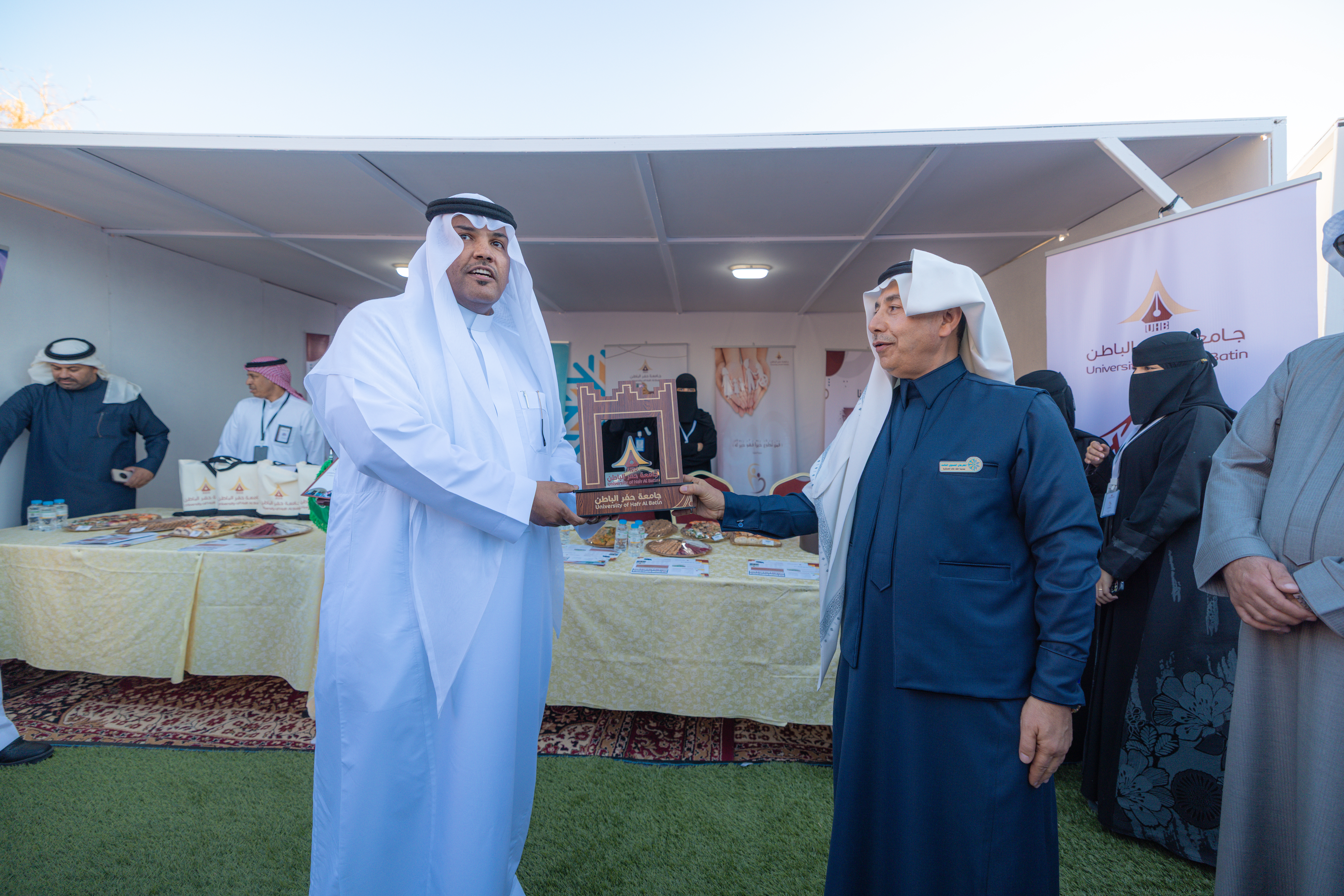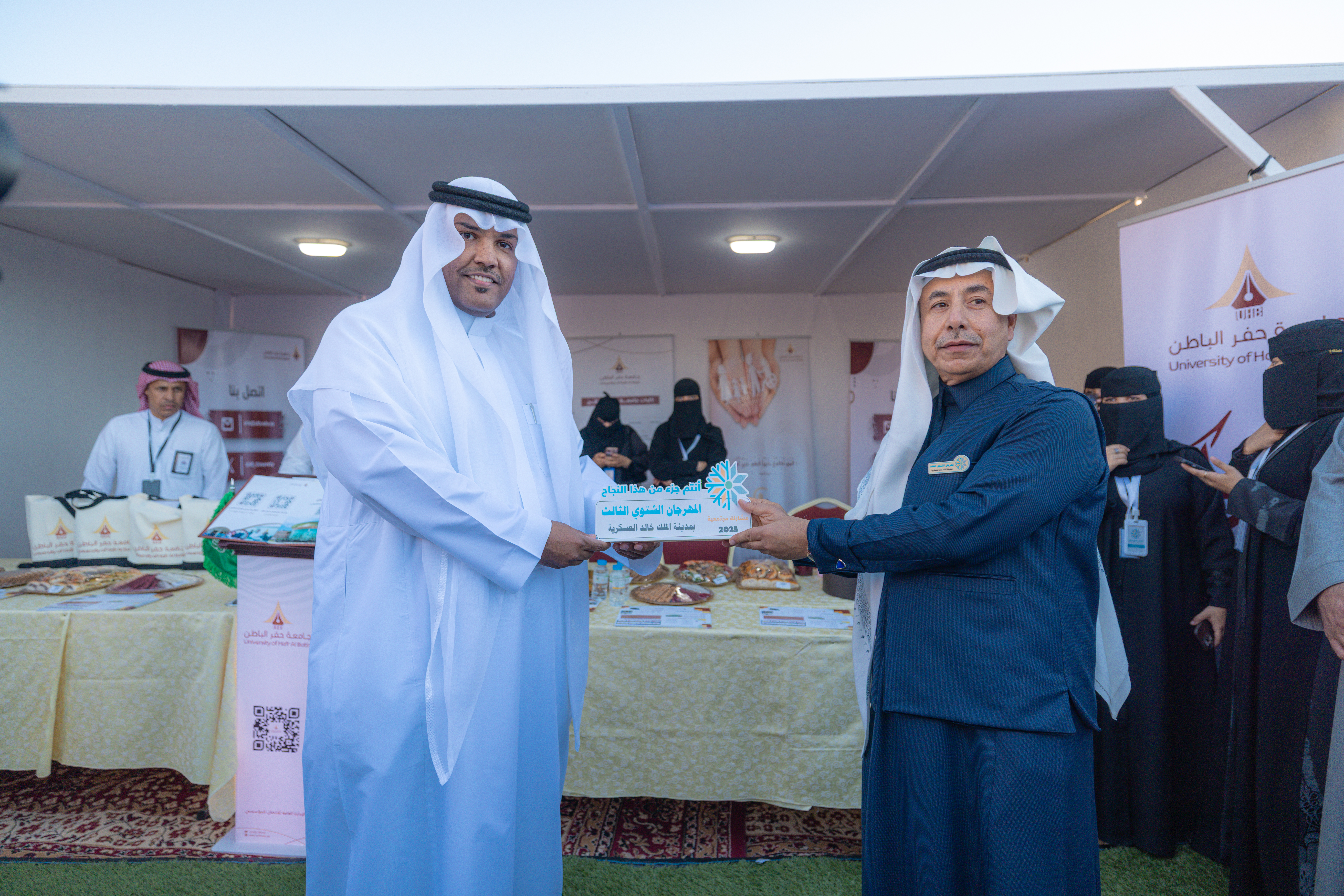 وفي ختام الزيارة قدم وكيل الجامعة للشؤون الأكاديمية درعاً تذكاريًا لقائد المنطقة؛ تقديراً للتعاون القائم بين الجامعة ومدينة الملك خالد العسكرية وتعزيزًا للشراكات الهادفة إلى خدمة المجتمع. كما تسلّم درعاً تذكارياً من قائد المنطقة الشمالية، تعبيرًا عن الشكر والتقدير لمشاركة الجامعة وجهودها في فعاليات المهرجان.