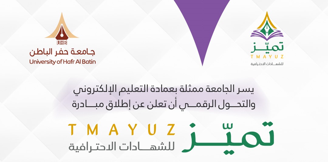 يسر وكالة الجامعة ممثلة بعمادة التعليم الإلكتروني والتحول الرقمي بجامعة حفر الباطن أن تعلن عن إطلاق مبادرة تميّز للشهادات الاحترافية